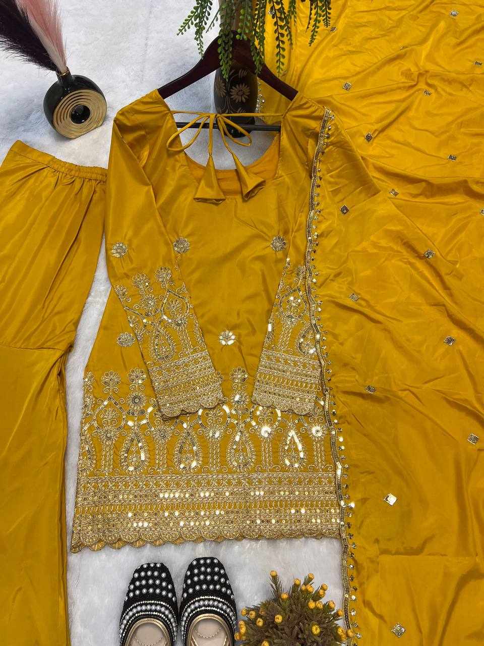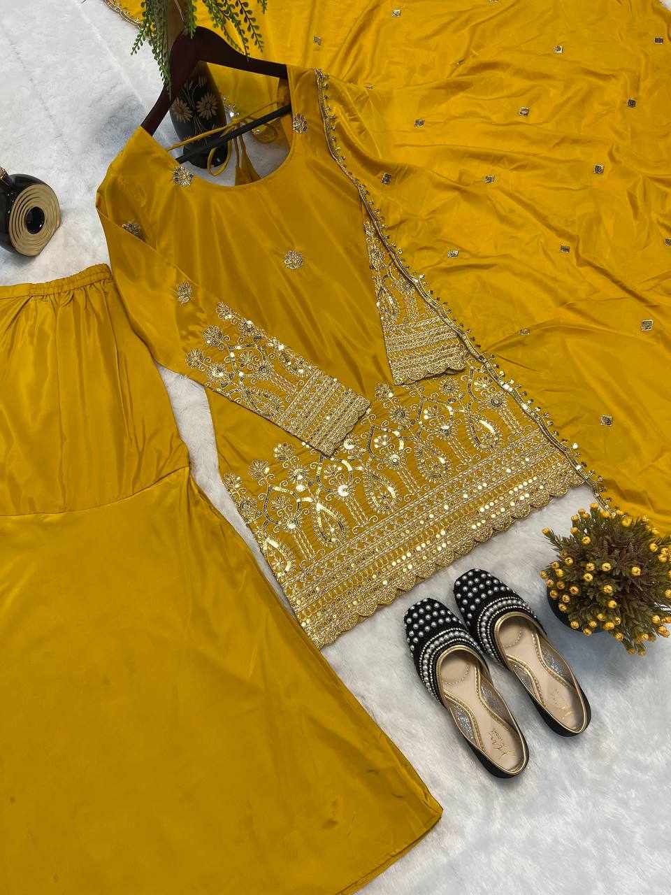 | Name : | MF 455 Heavy Natural Crep Silk Top With Sarara Plazo |